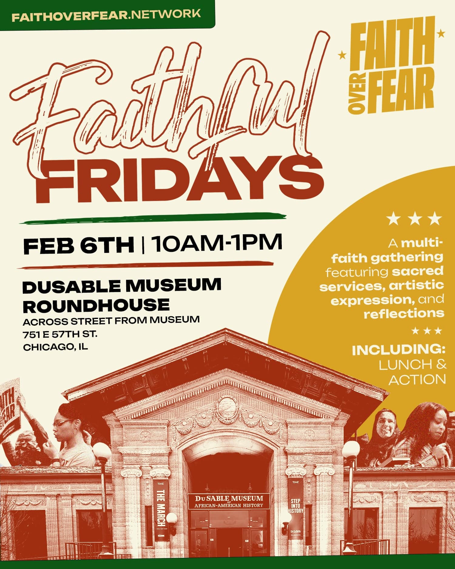 DuSable Museum Roundhouse 751 E 57th St, Chicago, IL, United StatesWe invite you to join the Faith Over Fear Coalition for the return of our monthly Faithful Fridays gathering, hosted […]